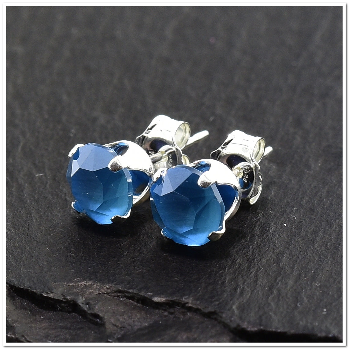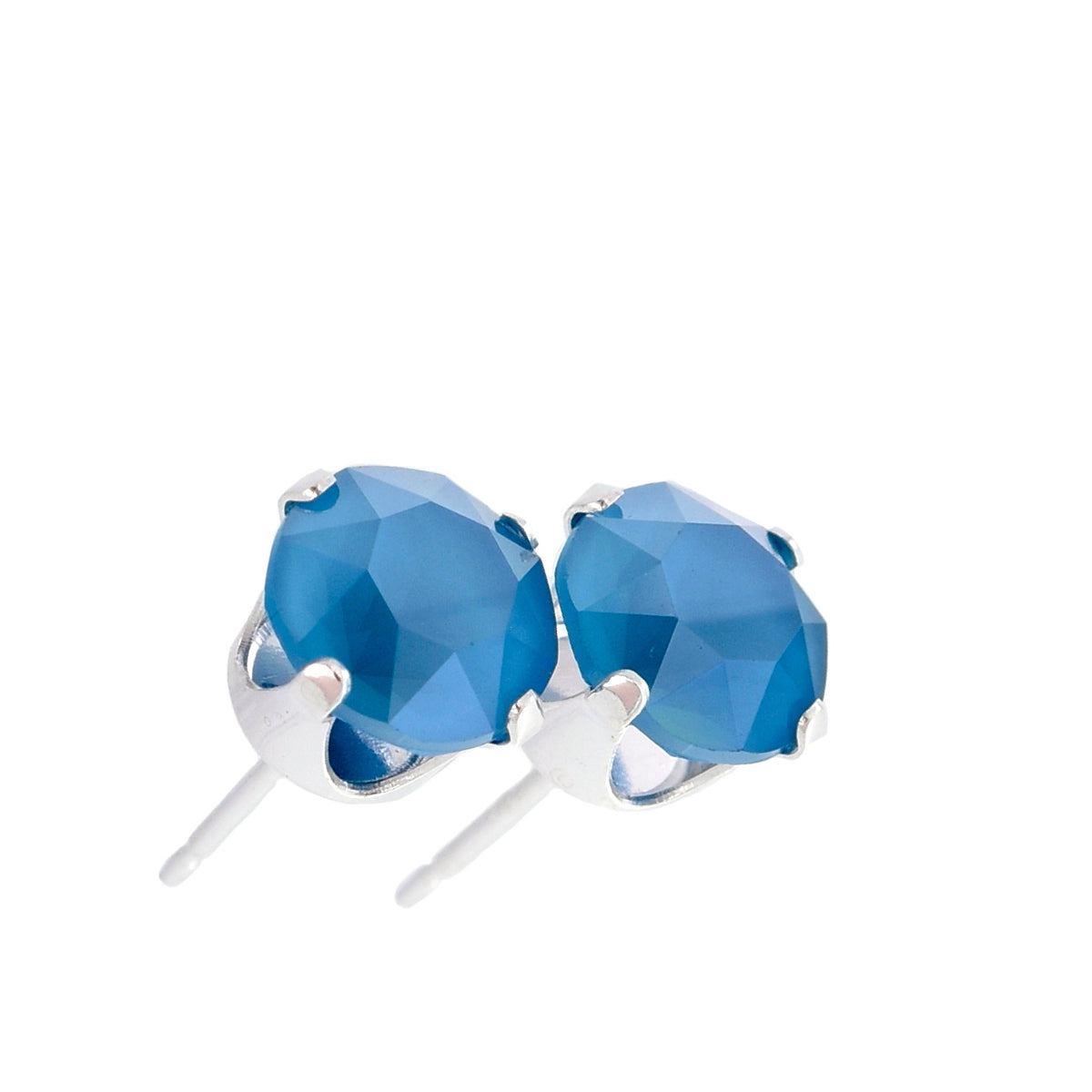 Our Classic Collection of Sterling silver crystal stud earrings is a stunning addition to any woman's jewellery collection. These earrings feature sparkling Azure Blue crystals set in Sterling silver settings and measure 6mm x 6mm.