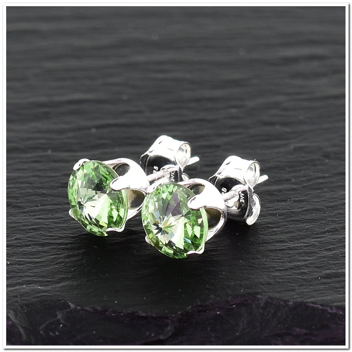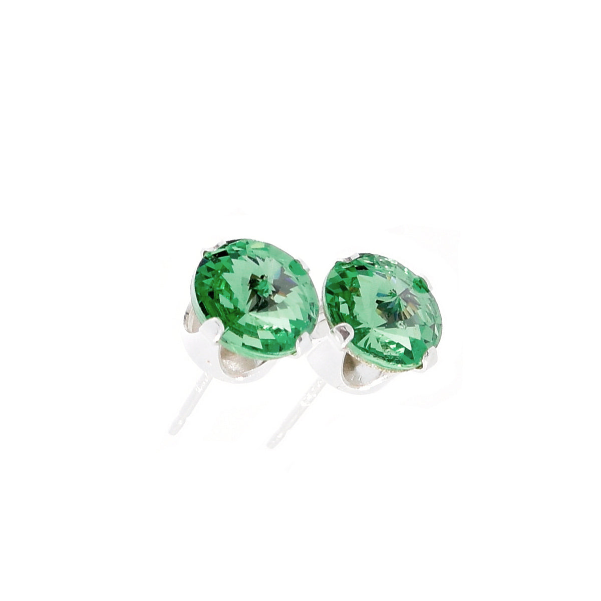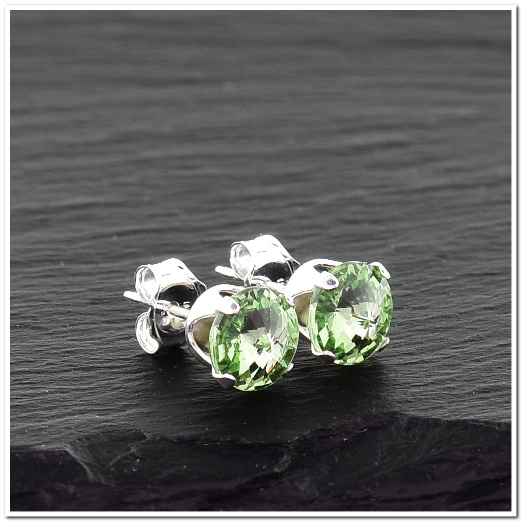 Our Classic Collection of Sterling silver crystal stud earrings is a stunning addition to any woman's jewellery collection. These earrings feature brilliant Peridot green crystals set in Sterling silver settings and measure 6mm x 6mm.