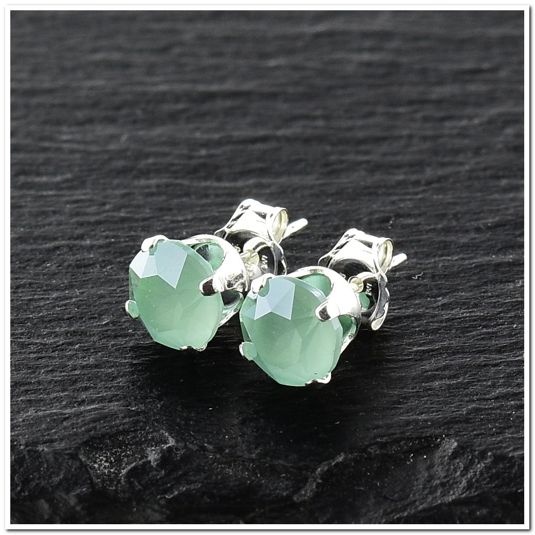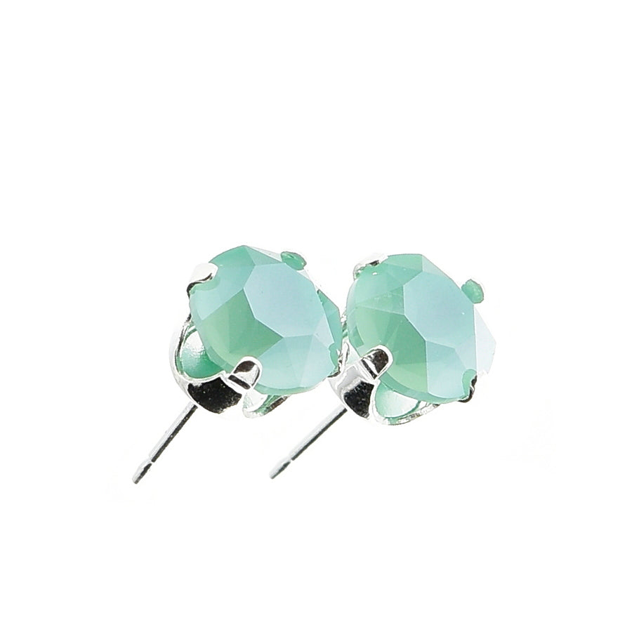 Our Classic Collection of Sterling silver crystal stud earrings is a stunning addition to any woman's jewellery collection. These earrings feature sparkling Mint Green crystals set in Sterling silver settings and measure 6mm x 6mm.