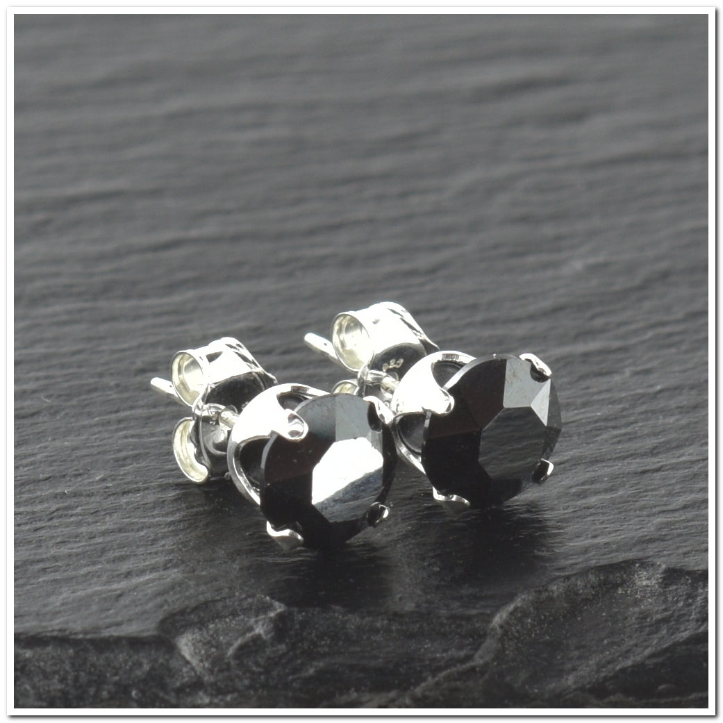 Our Classic Collection of Sterling silver crystal stud earrings is a stunning addition to any woman's jewellery collection. These earrings feature sparkling Hematite crystals set in Sterling silver settings and measure 6mm x 6mm.