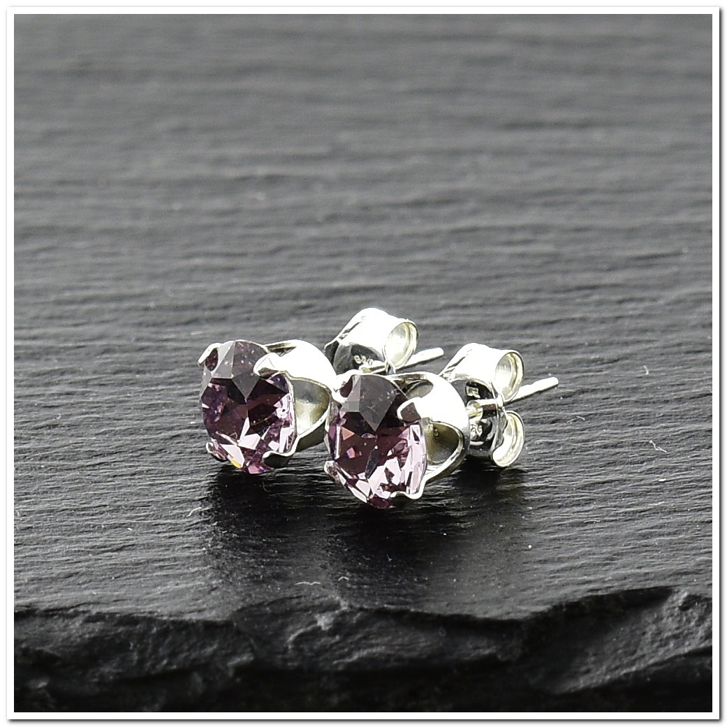 Our Classic Collection of Sterling silver crystal stud earrings is a stunning addition to any woman's jewellery collection. These earrings feature sparkling Light Amethyst crystals set in Sterling silver settings and measure 6mm x 6mm.