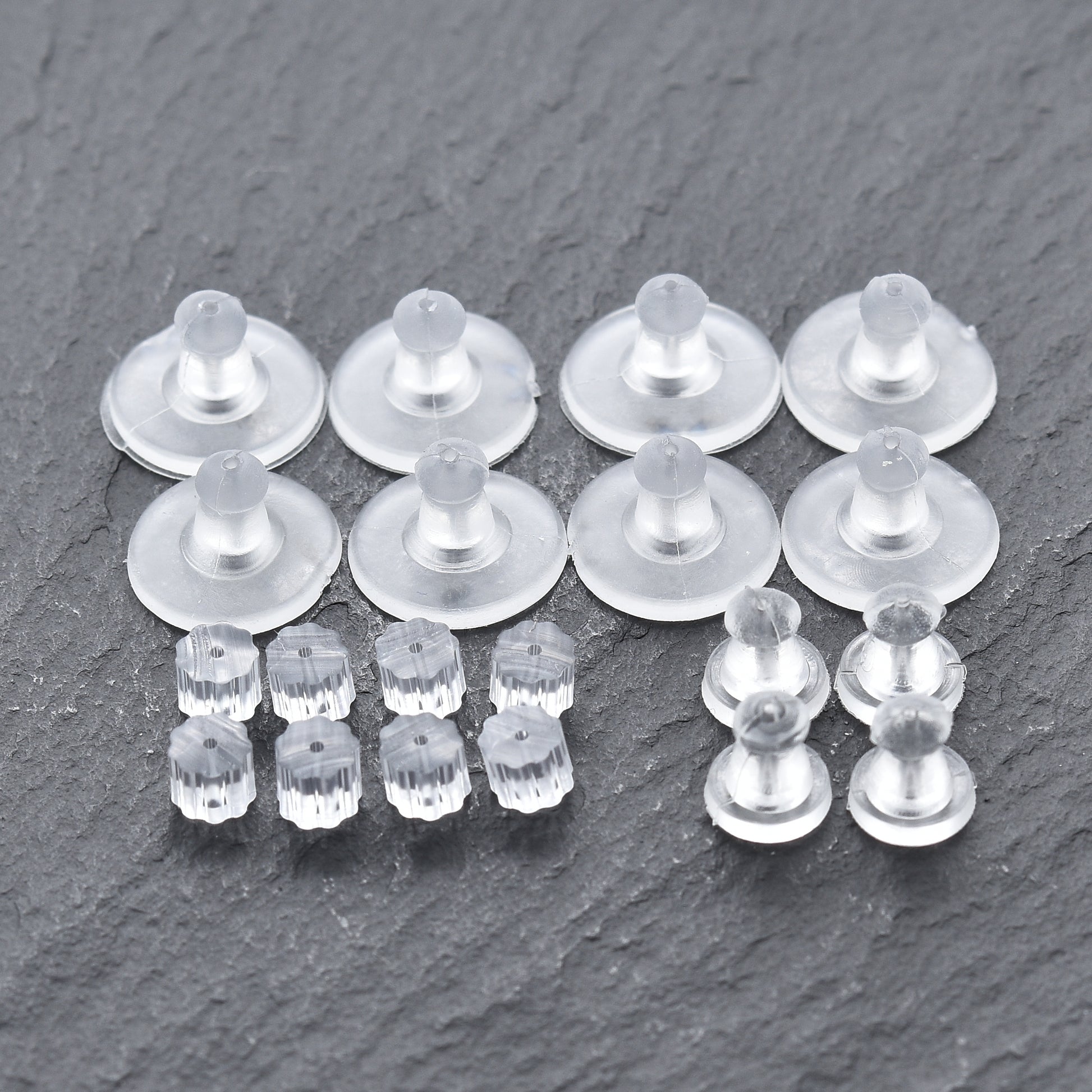4 pairs of soft bullet earring backs; can also be used as stoppers on fishhooks; 2 pairs of button earring backs; 4 pairs of large disc earring bullet backs.