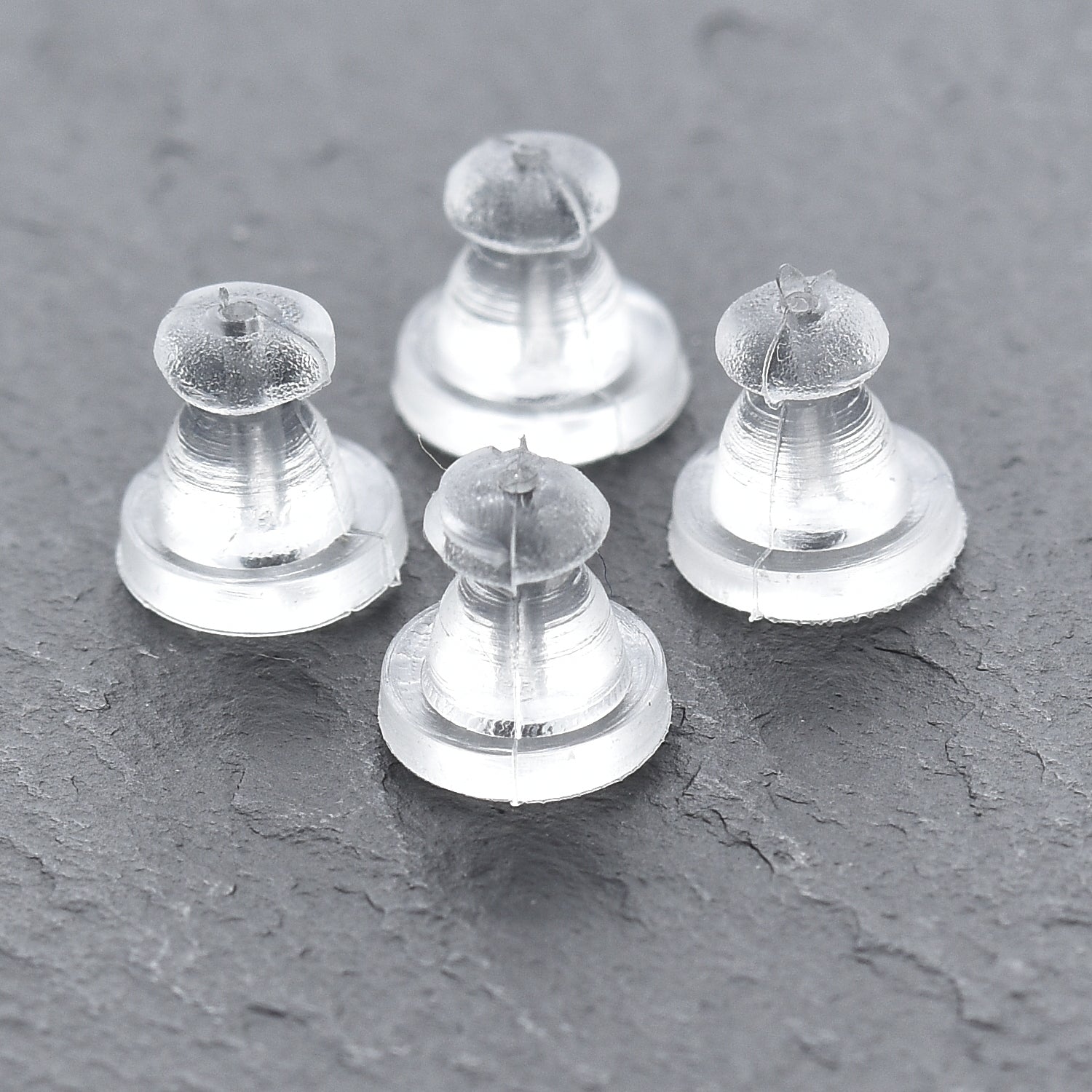 Replace your earring scrolls or metal bullet backs with these comfortable and secure plastic earring backs for sensitive ears.