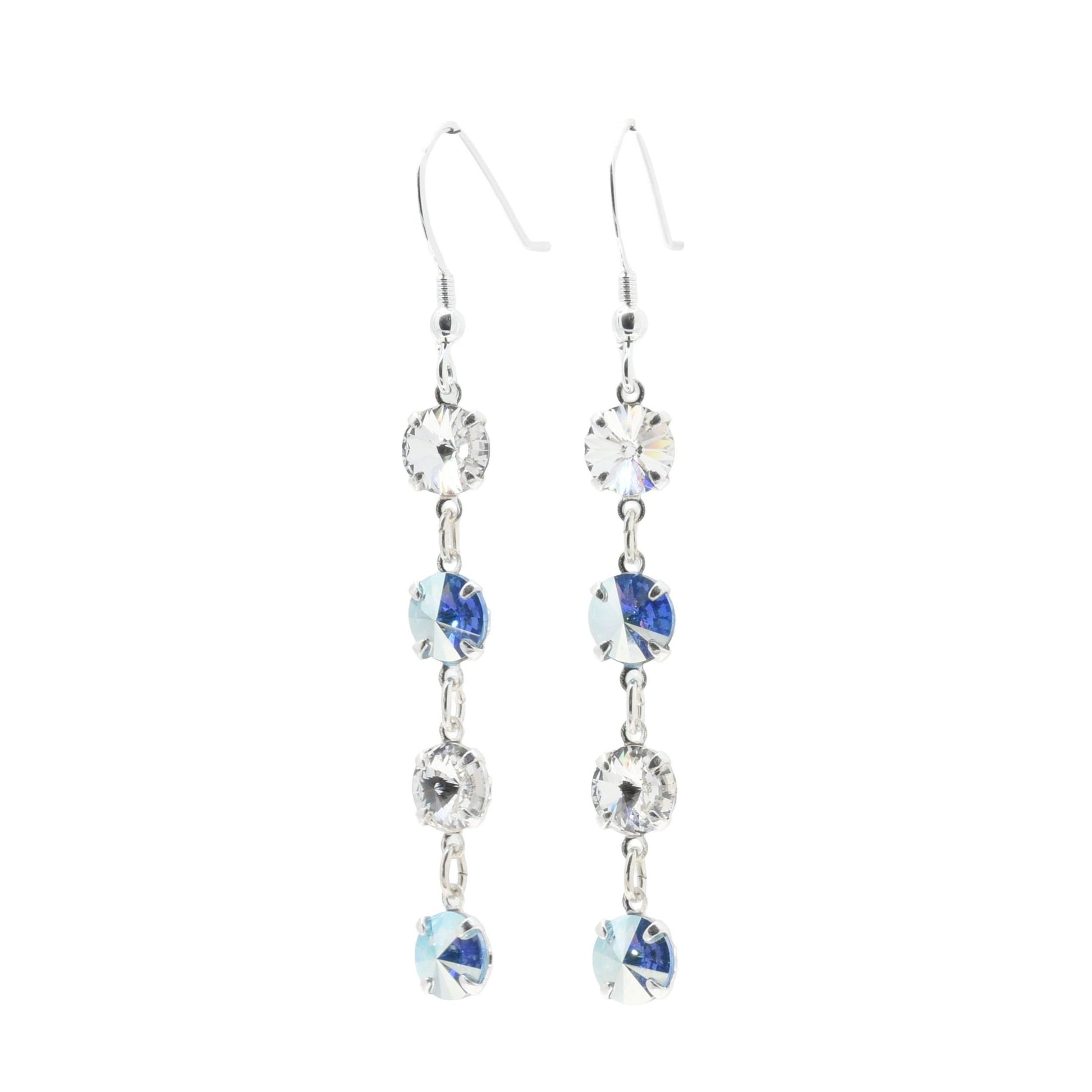 These Sterling silver drop earrings blend timeless beauty with modern elegance. Each pair is handcrafted with sparkling 6mm Vintage Diamond White and Aurore Boreal crystals made by Swarovski®, set in silver-plated stone settings with sterling silver fishhooks stamped 925.