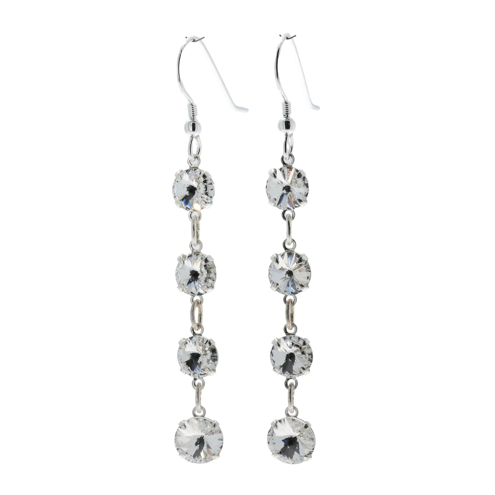 These Sterling silver drop earrings blend timeless beauty with modern elegance. Each pair is handcrafted with sparkling 6mm Vintage Diamond White crystals made by Swarovski®, set in silver-plated stone settings with sterling silver fishhooks stamped 925.