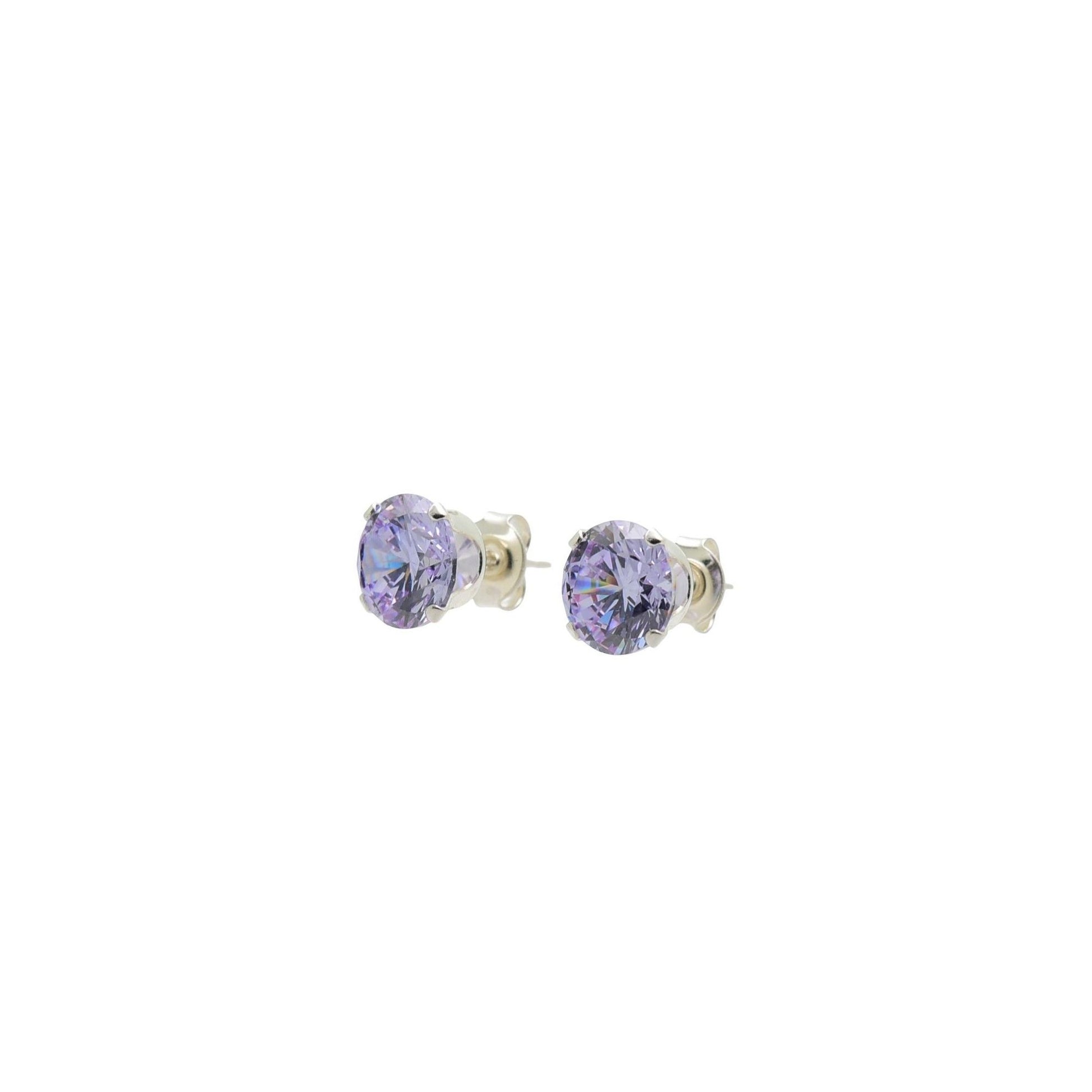 Featuring brilliant Lavender AAA Cubic Zirconia Crystal, sterling silver setting, posts and scrolls stamped 925.
