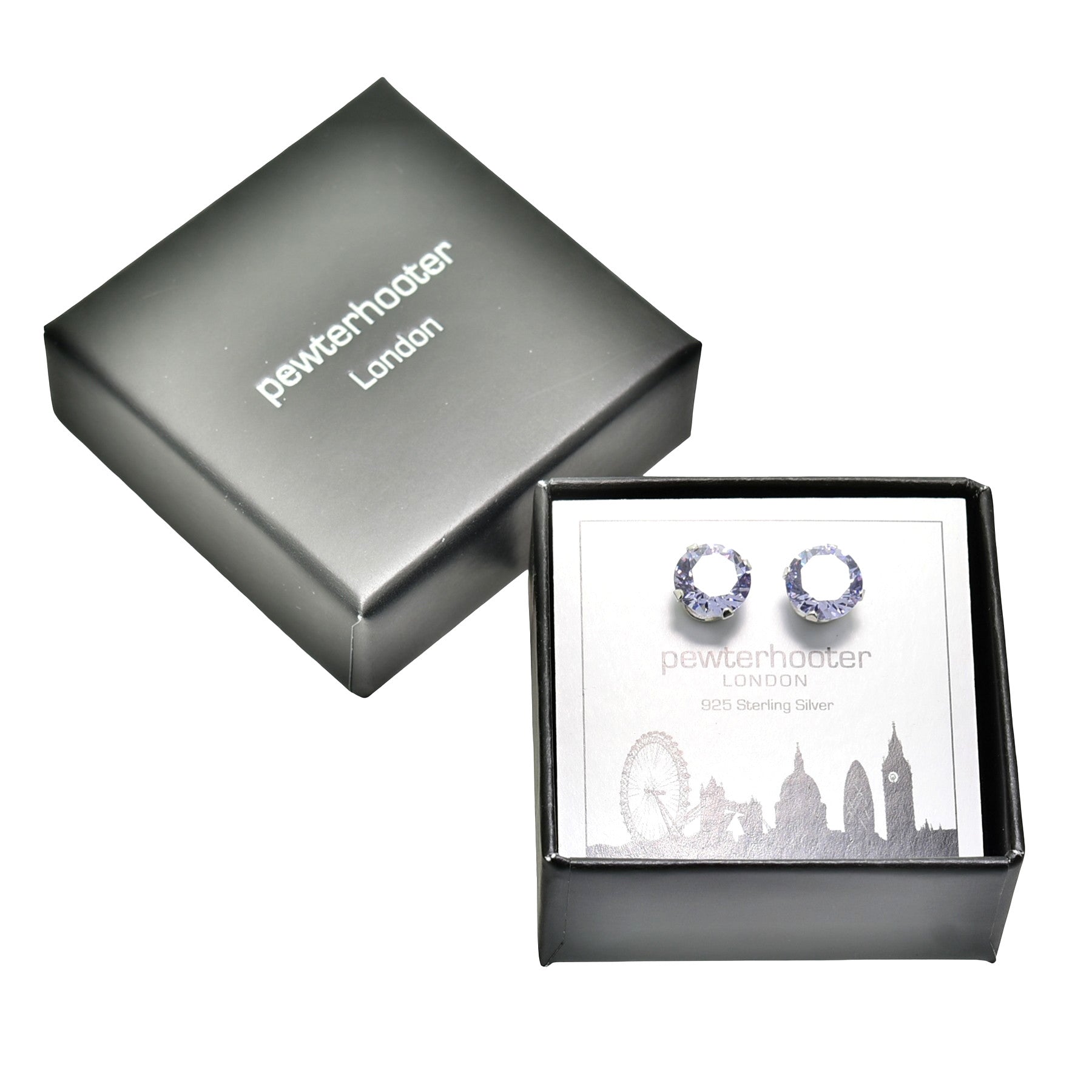 pewterhooter® Women’s 925 Sterling Silver Stud Earrings with Sparkling Lavender Crystal - Presented in a Gift Box