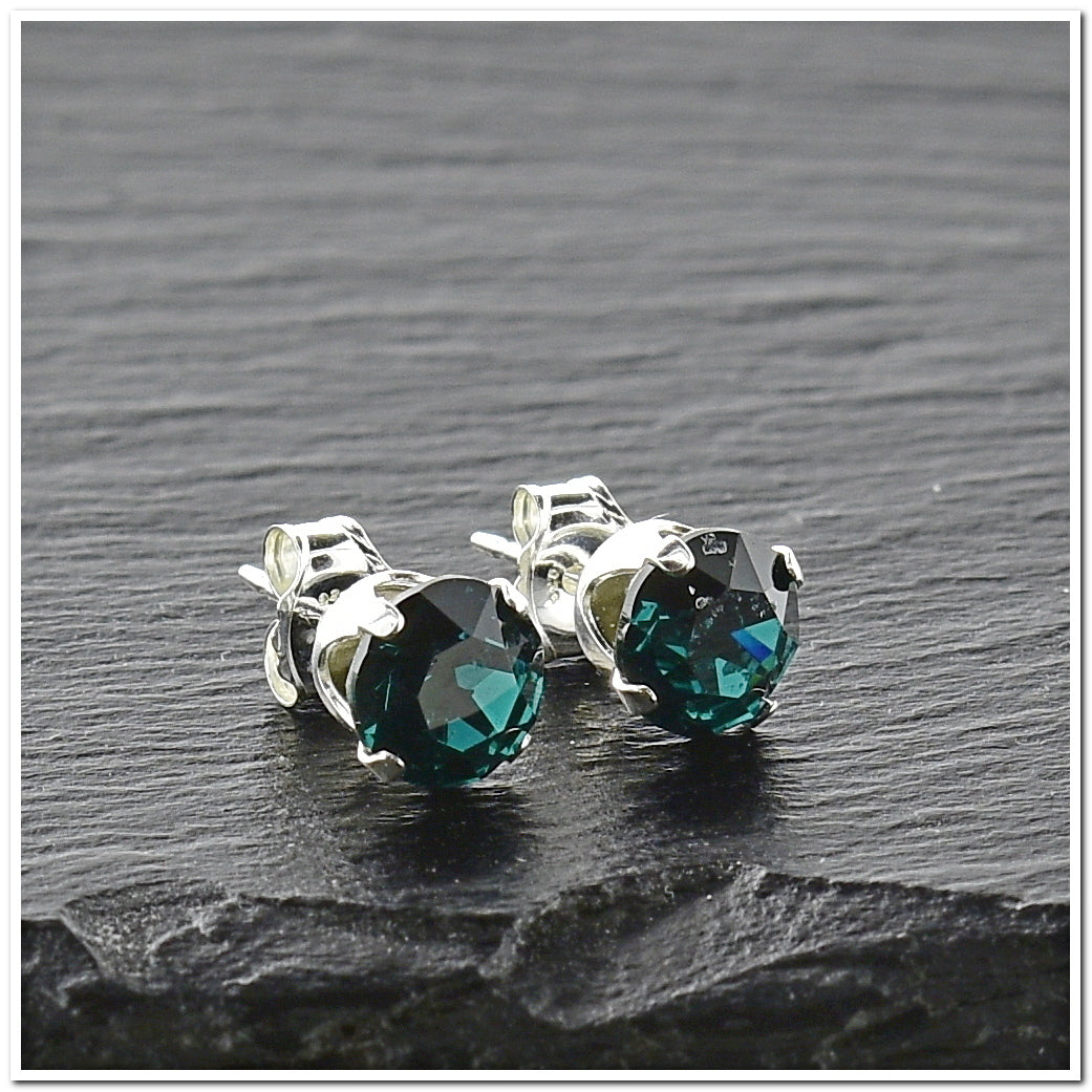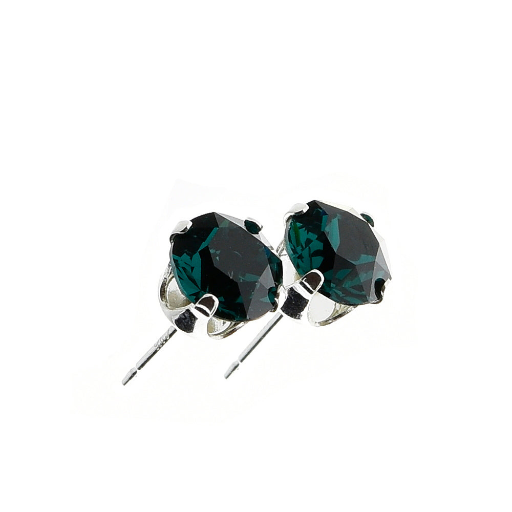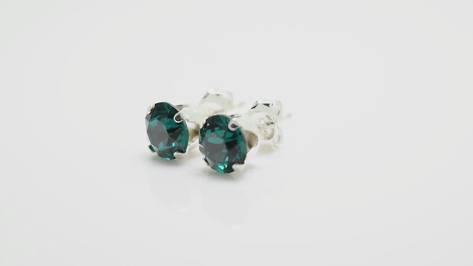 Our Classic Collection of Sterling silver crystal stud earrings is a stunning addition to any woman's jewellery collection. These earrings feature sparkling Emerald Green crystals set in Sterling silver settings and measure 6mm x 6mm.