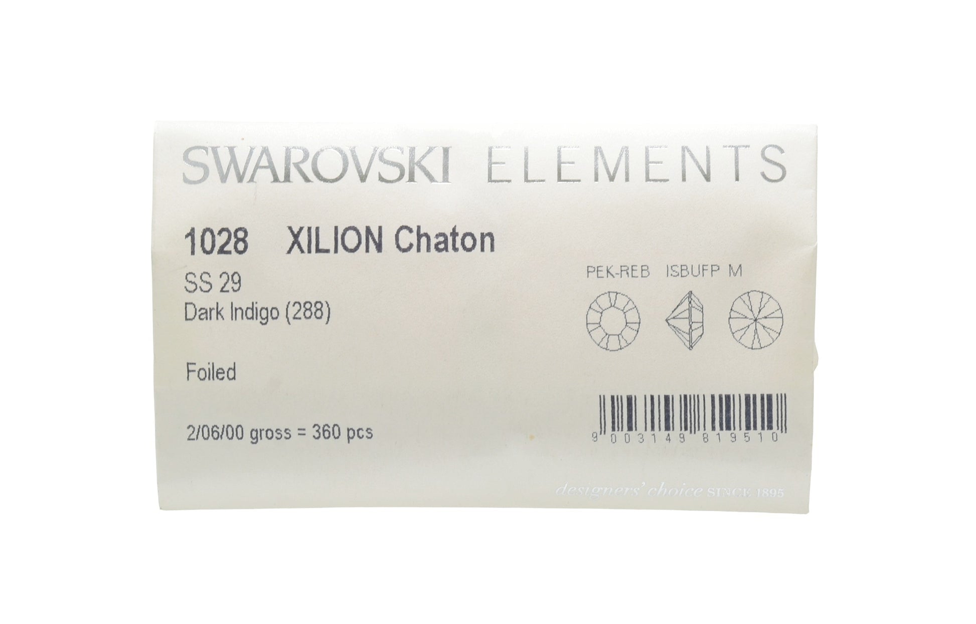 This listing is for a factory-sealed Swarovski pack containing 360 pieces of genuine 1028 SS29 Chaton crystals in the classic Dark Indigo colour.